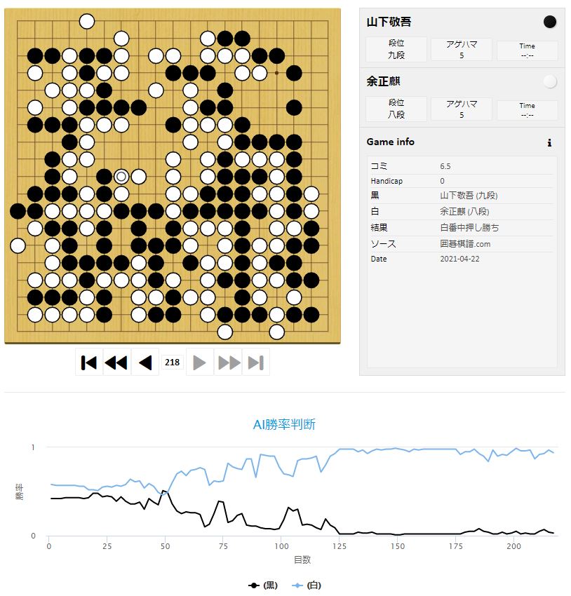 TOP | 話題一覧 | 第46期棋聖戦Sリーグ 第46期棋聖戦Sリーグ 囲碁棋譜COM local 2022/03/18 19:59 Sリーグは6名総当り、2名が降格、2名挑戦者決定トーナメント進出。 序列 棋士 河野 高尾 村川 一力 山下 余 成績 昇降 1 河野臨 × × × 〇 × 1-4 陥落 2 高尾紳路 〇 × × 〇 × 2-3 残留 3 村川大介 〇 〇 × 〇 × 3-2 残留 4 一力遼 〇 〇 〇 〇 〇 5-0 1位 5 山下敬吾 × × × × × 0-5 陥落 6 余正麒 〇 〇 〇 × 〇 4-1 2位 コメント数: 14 囲碁棋譜COM 2021/05/07 10:03 https://igo-kifu.com/kifu/10363 【第46期棋聖戦Sリーグ】(黒)高尾紳路九段 対 村川大介九段(白) 囲碁棋譜COM 2021/05/07 10:05 https://igo-kifu.com/kifu/10362 【第46期棋聖戦Sリーグ】(黒)山下敬吾九段 対 余正麒八段(白) 囲碁棋譜COM 2021/05/07 10:08 https://igo-kifu.com/kifu/10361 【第46期棋聖戦Sリーグ】(黒)河野臨九段 対 一力遼天元(白) 囲碁棋譜COM 2021/05/07 10:10 https://igo-kifu.com/kifu/10403 【第46期棋聖戦Sリーグ】(黒)村川大介九段 対 河野臨九段(白) 囲碁棋譜COM 2021/05/25 19:07 https://igo-kifu.com/kifu/10455 【第46期棋聖戦Sリーグ】(黒)一力遼天元 対 山下敬吾九段(白) 囲碁棋譜COM 2021/06/01 08:22 https://igo-kifu.com/kifu/10479 【第46期棋聖戦Sリーグ】(黒)余正麒八段 対 高尾紳路九段(白) 囲碁棋譜COM 2021/06/18 08:37 https://igo-kifu.com/kifu/10527 【第46期棋聖戦Sリーグ】(黒)河野臨九段 対 余正麒八段(白) 囲碁棋譜COM 2021/06/18 08:43 https://igo-kifu.com/kifu/10555 【第46期棋聖戦Sリーグ】(黒)村川大介九段 対 一力遼天元(白) 囲碁棋譜COM 2021/07/16 07:06 https://igo-kifu.com/kifu/10619 【第46期棋聖戦Sリーグ】(黒)河野臨九段 対 高尾紳路九段(白) 囲碁棋譜COM 2021/07/27 09:28 https://igo-kifu.com/kifu/10652 【第46期棋聖戦Sリーグ】(黒)余正麒八段 対 一力遼天元(白) 囲碁棋譜COM 2021/08/17 10:09 https://igo-kifu.com/kifu/10706 【第46期棋聖戦Sリーグ】(黒)山下敬吾九段 対 村川大介九段(白) 囲碁棋譜COM 2021/08/24 07:21 https://igo-kifu.com/kifu/10740 【第46期棋聖戦Sリーグ】(黒)一力遼天元 対 高尾紳路九段(白) 囲碁棋譜COM 2021/09/24 07:53 https://igo-kifu.com/kifu/10821 【第46期棋聖戦Sリーグ】(黒)村川大介九段 対 余正麒八段(白) 囲碁棋譜COM 2021/09/24 07:56 https://igo-kifu.com/kifu/10846 【第46期棋聖戦Sリーグ】(黒)山下敬吾九段 対 河野臨九段(白) コメント: コメント内容: ログインしてください! ログイン