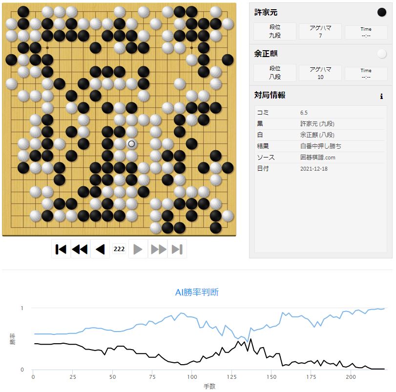 【第47期名人戦リーグ】(黒)許家元十段 対 余正麒八段(白)
