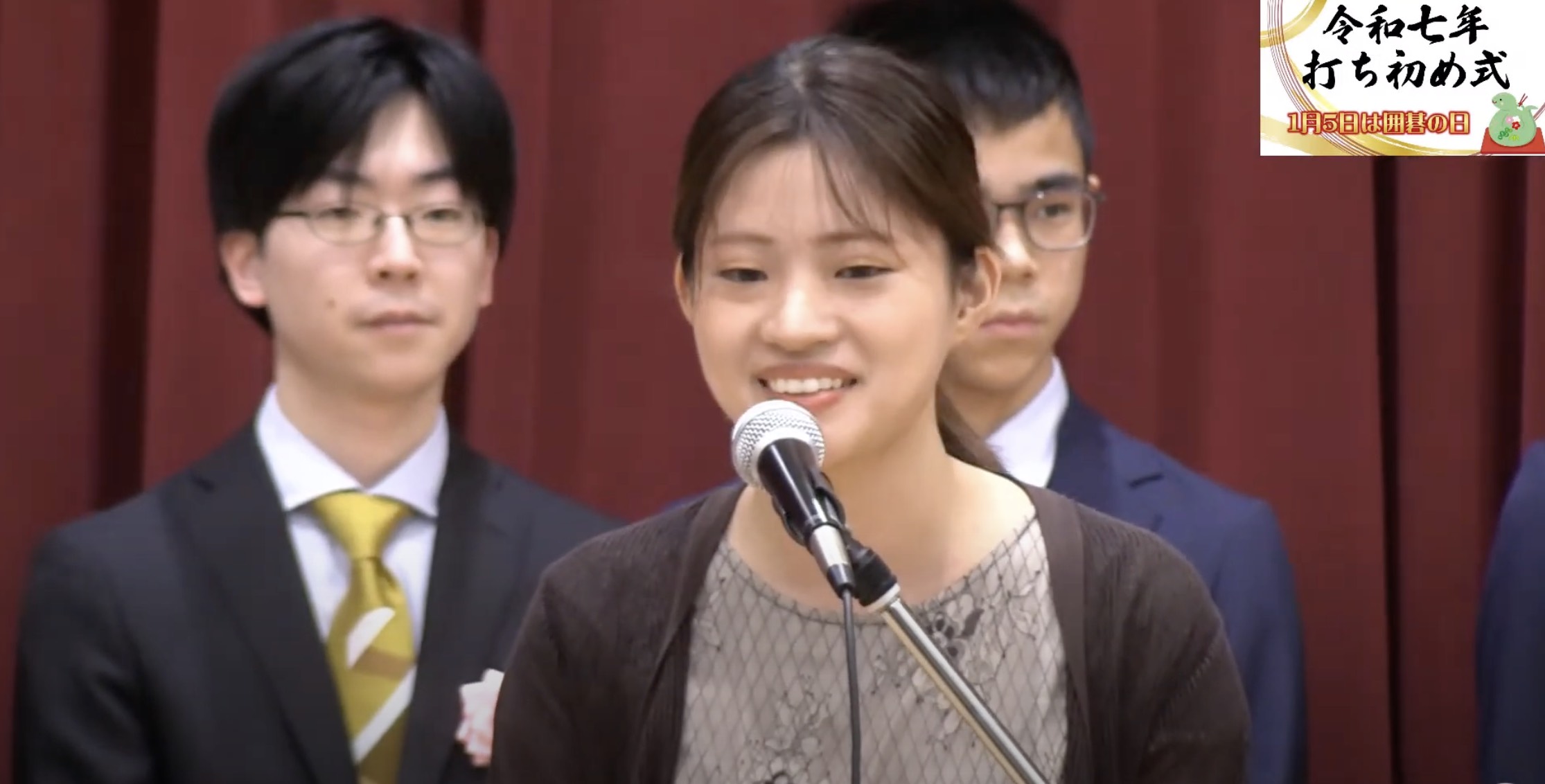 今年の打ち初め式には、日本棋士として19年ぶりに国際棋戦で優勝し世界一に輝いた一力遼四冠や、日本女性棋士として初めて主要な国際棋戦で優勝した上野愛咲美五段など、タイトルホルダーが勢揃いしました。